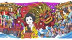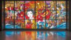 石川県・小松空港国際線旅客ビル 2 階出発ロビーに設置された大型常設ステンドグラス(高さ約3m、幅約7m)。「子供歌舞伎」をテーマに米林宏昌監督が原画・監修を担当。